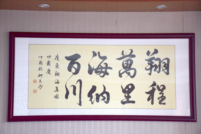 “翔程万里,海纳百川”,佛山市著名书法家亲自提笔,祝贺广东欧冠手机版买球官网(中国)有限公司官网集团20周年庆典。